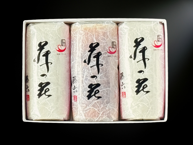 しっとりとして、彩鮮やかな紅白染め分けの「塗板」と香ばしい「焼板」の3本入りギフトです。